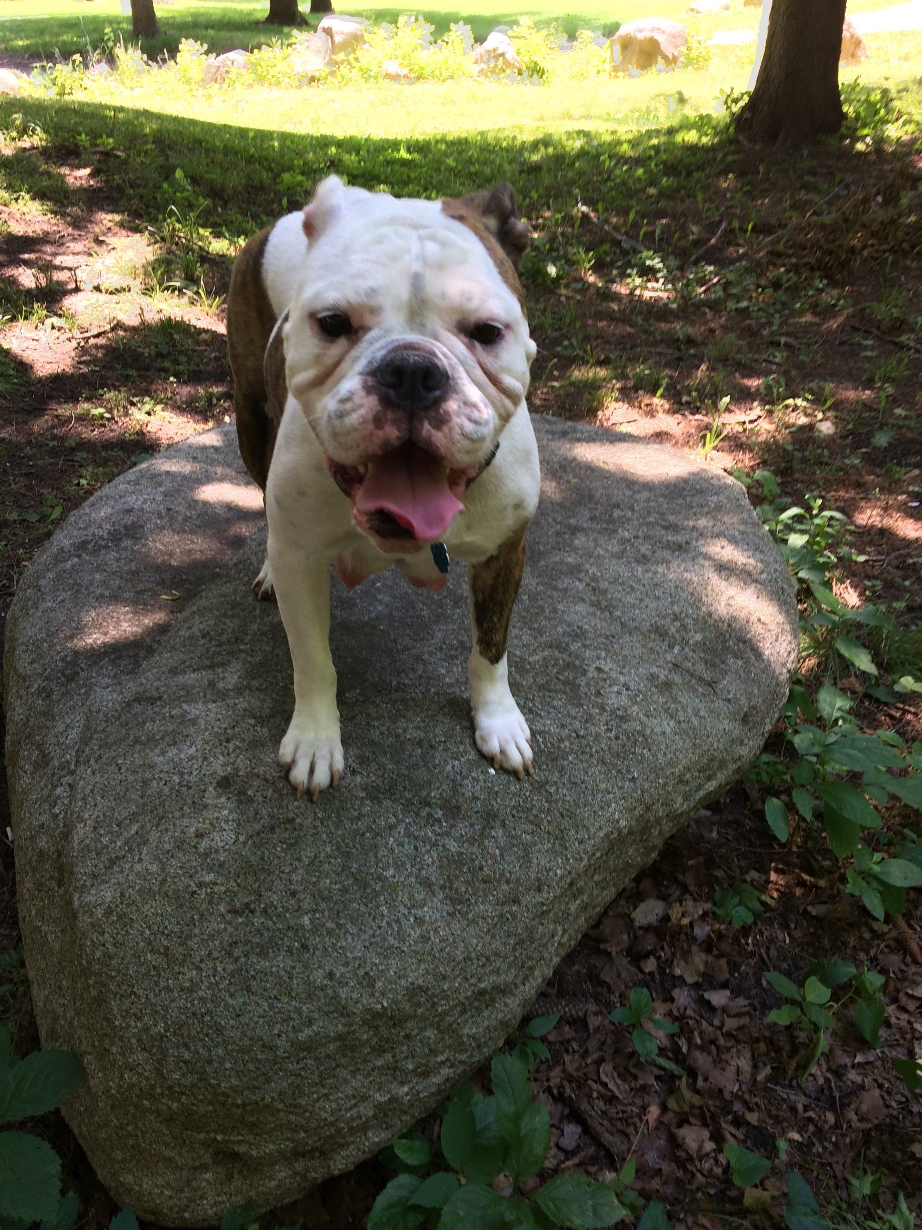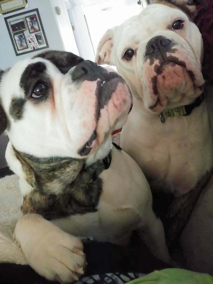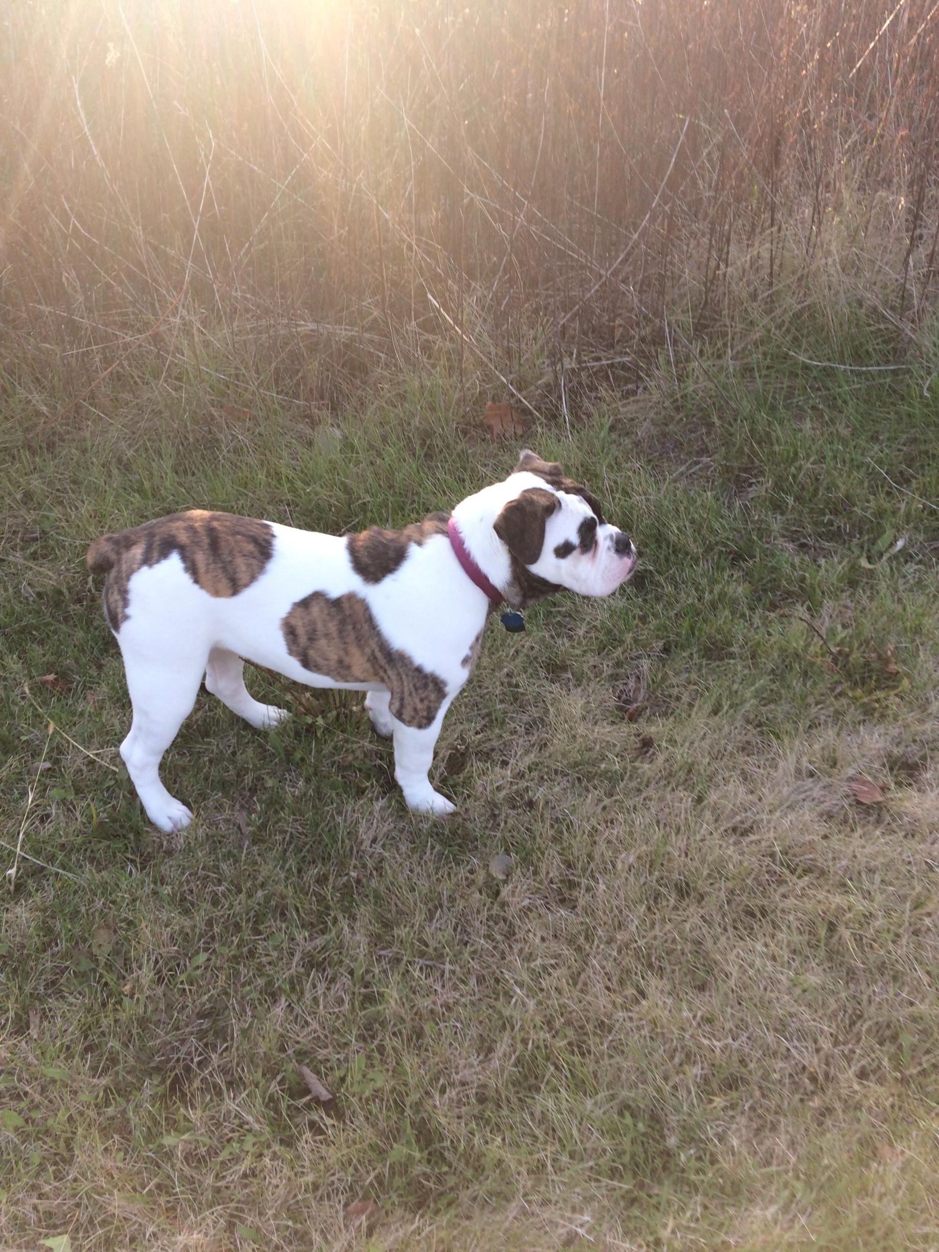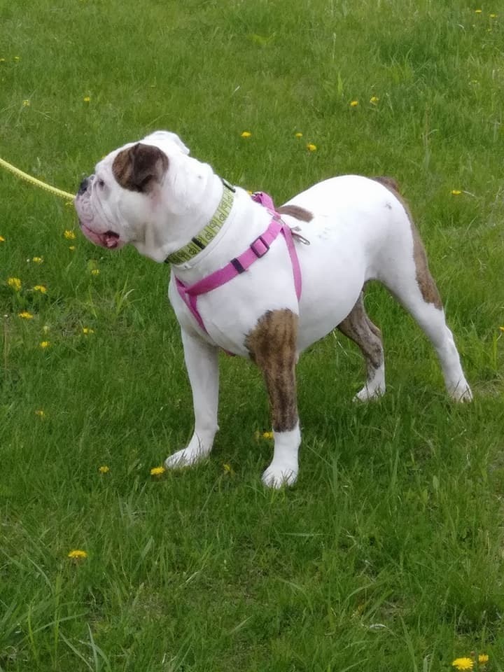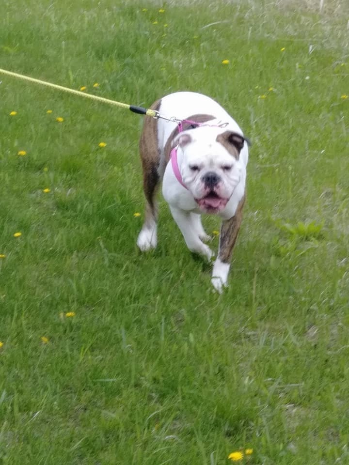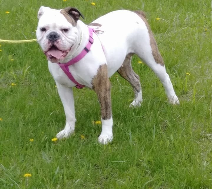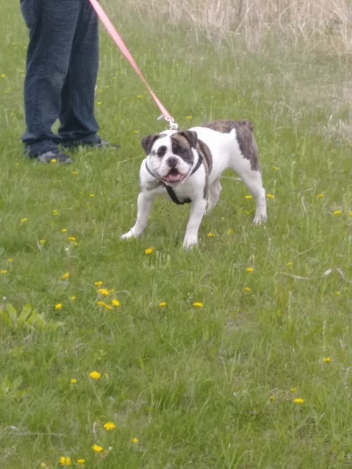 Zoey's next litter will be her second litter! Thorin and Zoey produced some beautiful pup and we are excited to see what her second litter with a outsource stud that will match our female. Zoey is a very sweet girl with lots of love to give to everyone. Also she is a big snuggle butt and loves her toys especially her squeaky balls. Zoey has every quality I picture a Olde English Bulldogge is. She is courageous, confident, strong, athletic, protective over her family. She is also silly and stubborn, a typical Olde English Bulldogge.